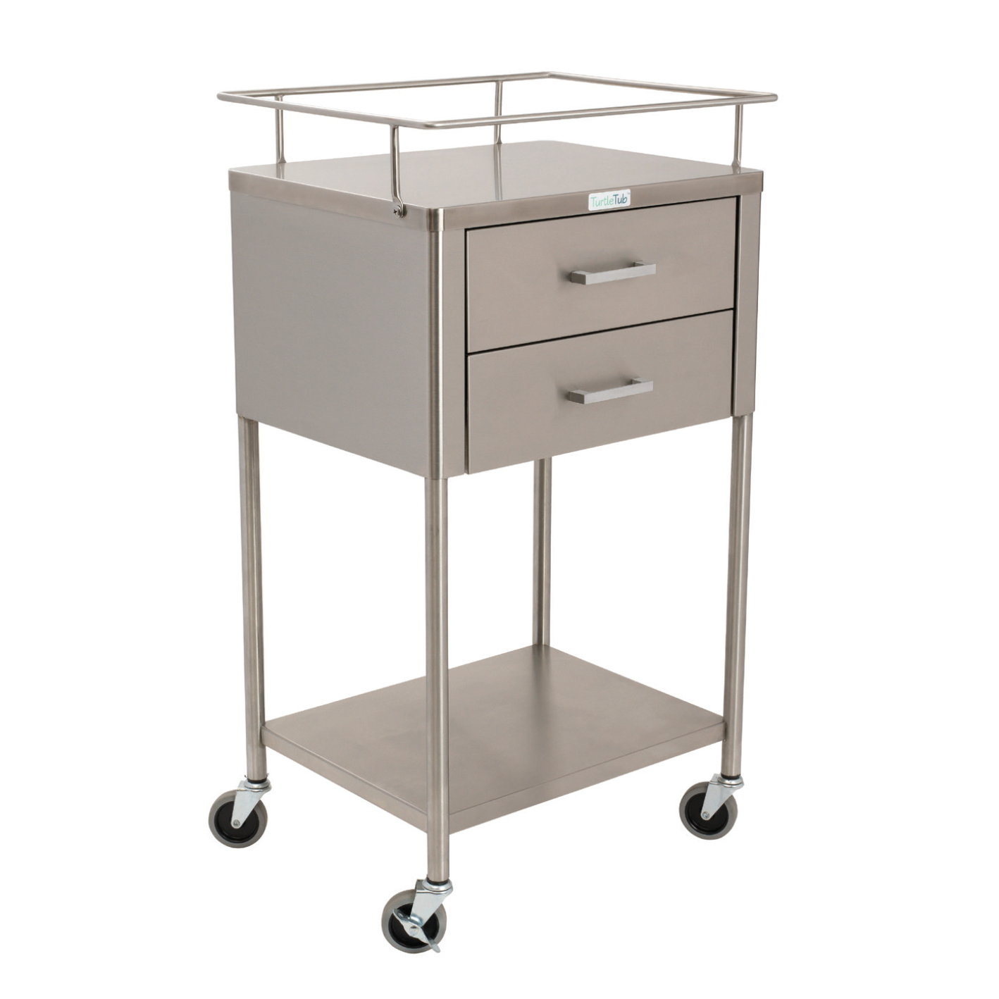 Zábradlí po celém obvodu, 2 aretovatelná kolečka, zásuvky s plynulým zavíráním