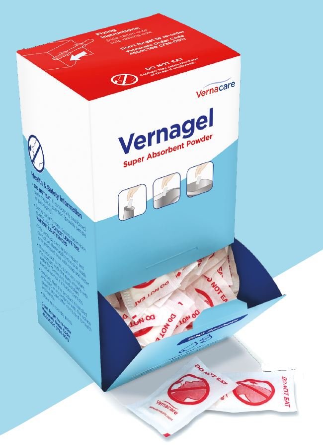Vernagel je superabsorpční polymer, který se používá ve spojení s jednorázovým papírovým nádobím Vernacare (pánské a dámské bažanty, emitní misky, mísy, umyvadla, apod.) pro snižování rizika křížové infekce, minimalizaci úniku tekutiny a zápachu. Je balen v praktických jednorázových sáčcích po 7 gramech.