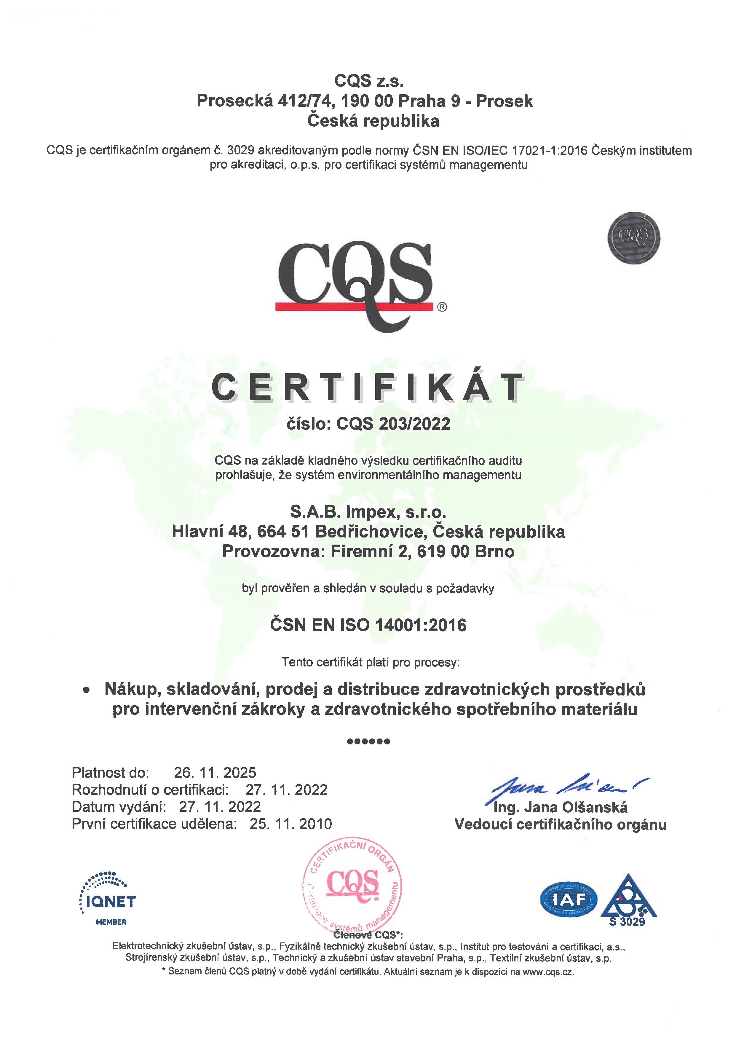 ✅ We maintain a management system according to ČSN EN ISO 9001, ISO 13485, and ISO 14001 as a tool for continuous improvement of customer service.