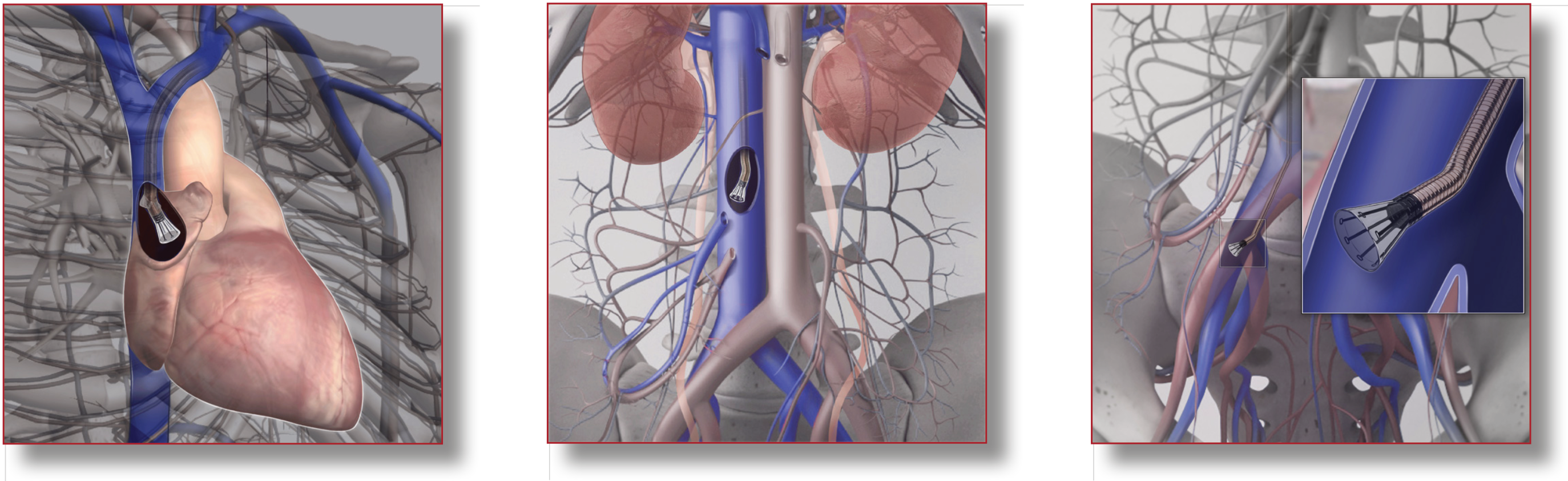 Místa přístupu: Pravá a levá krční tepna, Pravá a levá femorální žíla