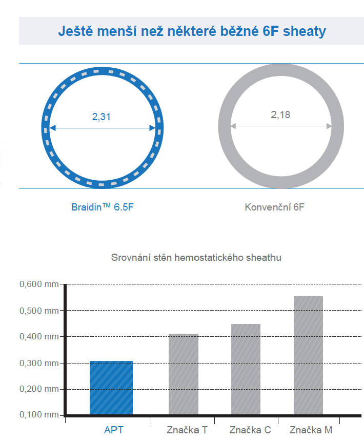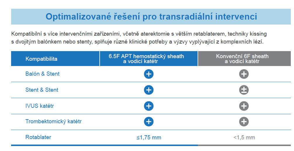 Stále vyšší prevalence komplexních PCI (perkutánních koronárních intervencí) a CTO (chronických totálních okluzí) zvyšuje poptávku po větších zavaděčích, které by pojaly více zařízení. Nicméně použití 7F zavaděče je doporučováno pro femorální tepnu. Sada APT 6,5 F poskytuje ideální alternativu, která umožňuje přístup přes radiální tepnu a zároveň nabízí větší vnitřní lumen pro snadnější manipulaci s více nástroji.