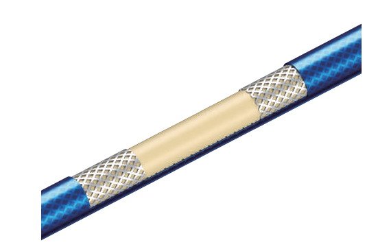 Kovová pletená struktura z nerezové oceli umožňuje vytvoření zaváděče s tenkou stěnou a velkým vnitřním lumenem, což usnadňuje průchod instrumentů.