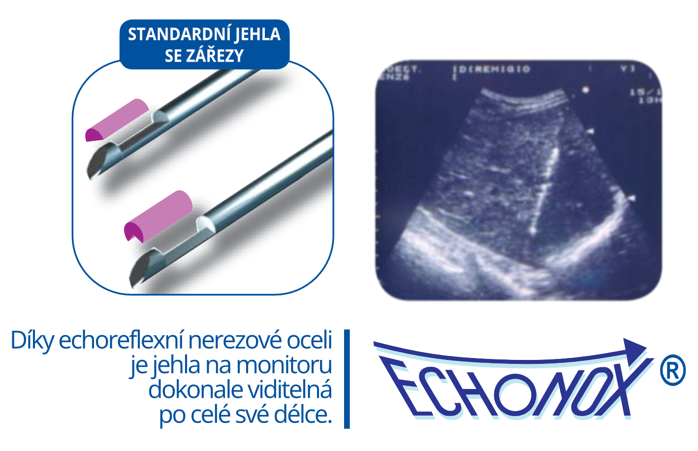 Integrovaná jehla ECHO-NOX® z nerezové oceli s vysokou echogenitou pro výbornou vizualizaci