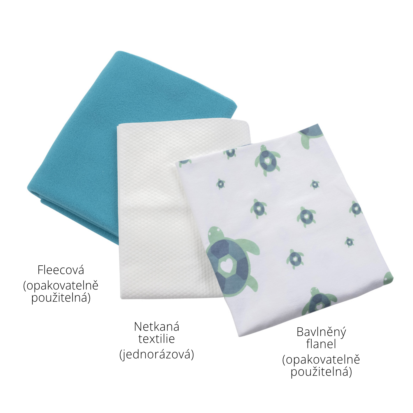 • Jednorázová netkaná textilie – vhodná pro nemocnice bez možnosti praní