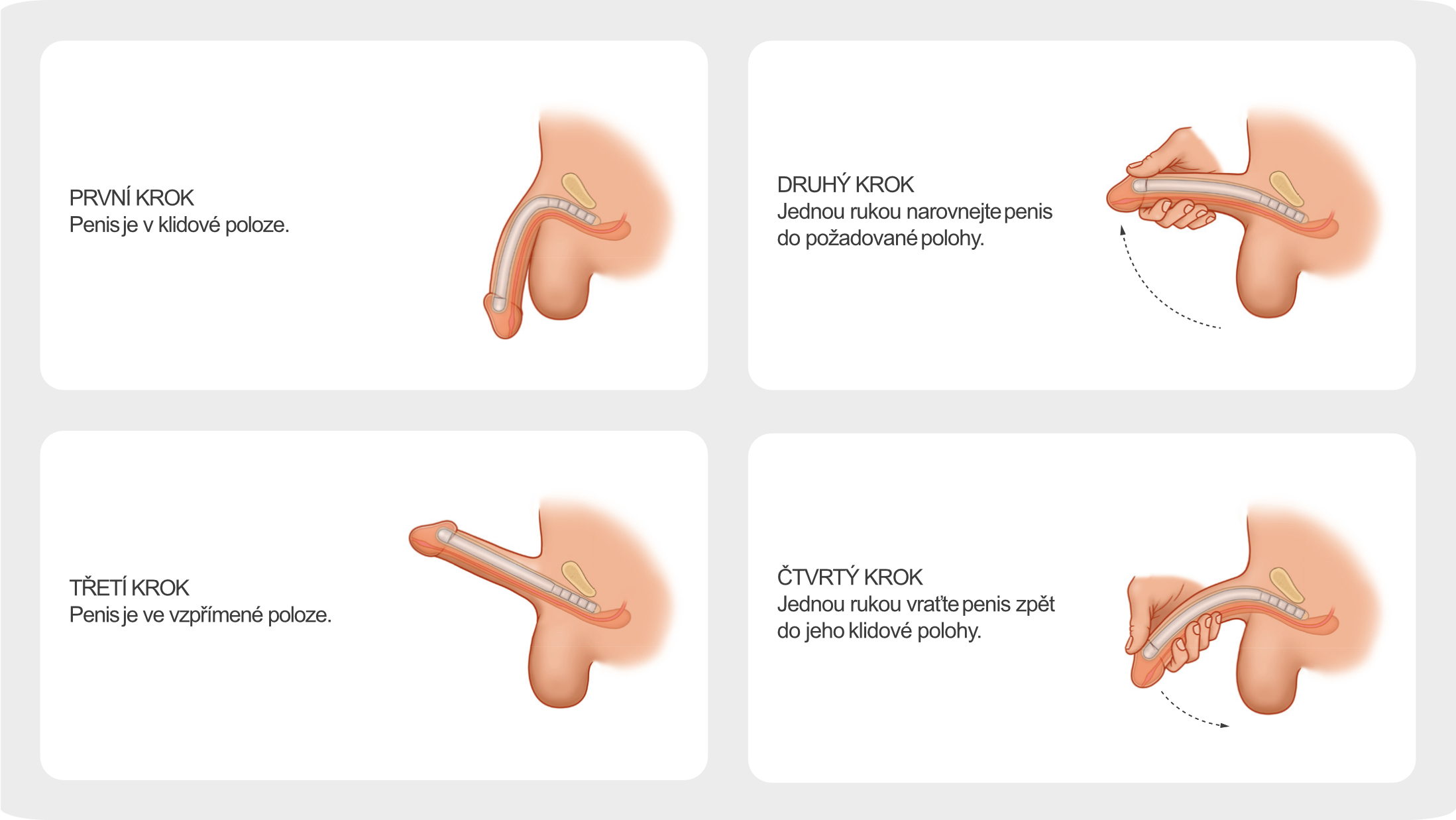 Po dokončení styku lze penis jednoduše vrátit do ochablé polohy. Implantát funguje stabilně a nepřetržitě — bez potřeby pumpy nebo mechanických částí.
